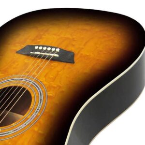 El paquete de guitarra acústica dreadnought de tamaño completo «imprescindible», de Washburn Guitars (fundada en 1883). Audiciona uno hoy y prepárate para sorprenderte. El paquete incluye una hermosa guitarra acústica Washburn, un afinador digital, un juego adicional de cuerdas y púas de guitarra, un soporte para guitarra, una correa de nailon y una bolsa de guitarra ajustada.