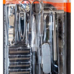 Use un peine para manejar y peinar su barba y cabello. El kit viene con un mango de navaja y hojas de repuesto que son ideales para una depilación facial perfecta, así como tijeras de cuidado personal para cortar el vello no deseado de las cejas, la barba y otras áreas. El kit viene con todo el equipo necesario para mantener manos y pies ordenados y recortados. Cuando no estén en uso, todas las herramientas se pueden mantener limpias y convenientemente almacenadas en el estuche con cremallera incluido.