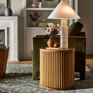 Agregue estilo a su iluminación interior con esta lámpara de mesa de cerámica con pantalla cónica de Threshold™ diseñada con Studio McGee. Esta lámpara de mesa tiene una base de cerámica color crema texturizada con un diseño escalonado que descansa sobre un disco circular de metal en tono dorado. Esta moderna lámpara de mesa viene con una pantalla cónica blanca hecha de lino para una apariencia hermosa y nítida. Las cadenas de tiro con ajuste de luz de encendido/apagado ofrecen un funcionamiento sencillo y vienen con un cable de 5 pies para una ubicación conveniente.