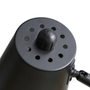 - Forma clásica y discreta con acabado de metal negro mate.