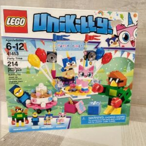 ¡Revive los momentos favoritos de las series de televisión más felices, brillantes y coloridas con LEGO Unikitty! El set 41453 Party Time, con un puesto de DJ con cubiertas, altavoces, globos y banderas, una pista de baile giratoria con luces, cajas de regalo para invitados y una enorme tarta de cumpleaños para llevar en un carrito de tartas.