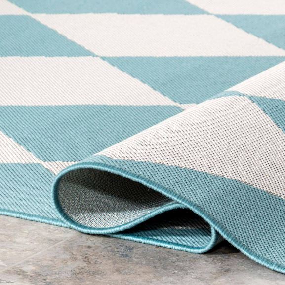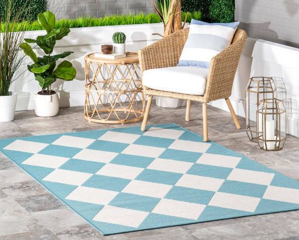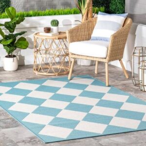 Alfombra de 5 x 8 para interior/exterior, con un estilo transicional verde azulado.