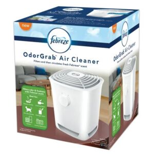 - Febreze Air Cleaner ayuda a capturar los olores del hogar mientras circula aire más limpio y fresco. Perfecto para espacios más pequeños como cajas de arena/camas para mascotas, baños, dormitorios, lavanderías o lodos