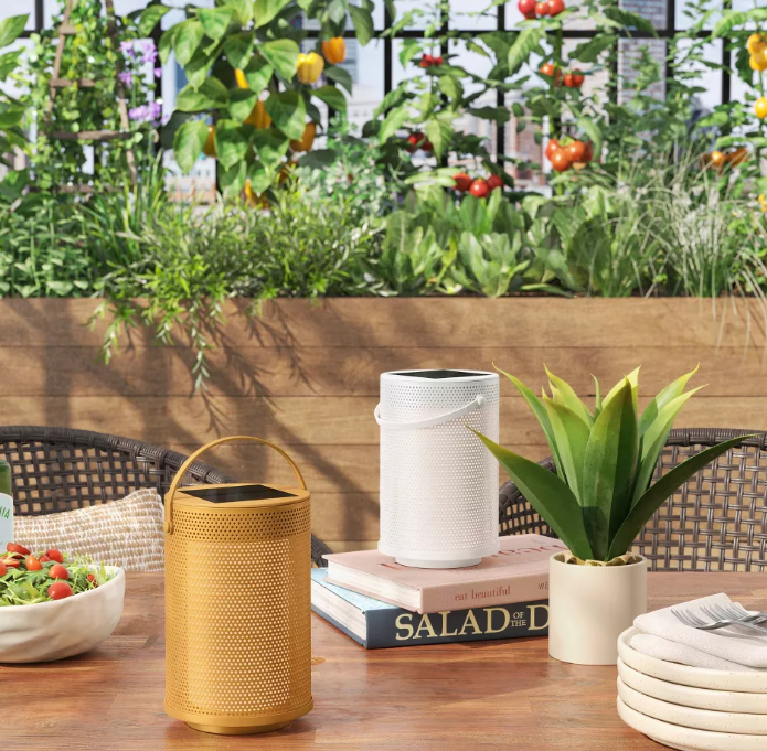 Dale un toque de elegancia moderna a tus espacios exteriores con esta linterna LED solar de malla y recargable por USB de Room Essentials™. Hecha de metal, esta linterna de color liso presenta un diseño de malla que le da un aspecto sofisticado. Con una bombilla LED, esta linterna incluye un sensor táctil con tres modos de funcionamiento: automático, encendido y apagado. Alimentada por energía solar, también puedes recargarla con un cable USB si lo necesitas.