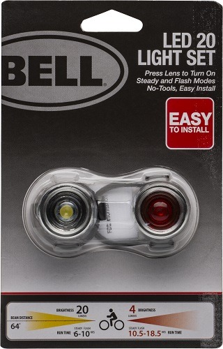 Asegúrese de estar visible y seguro cuando pasee en bicicleta con el juego de luces LED 20 de Bell. Este juego de luces de 2 piezas es todo lo que necesita para agregar funcionalidad adicional, equipo de seguridad y tranquilidad a cualquier bicicleta. La luz delantera blanca tiene una potencia de 20 lúmenes con una distancia de haz de 64 ‘y una duración de la batería de hasta 10 horas. La luz de fondo roja tiene una potencia nominal de 4 lúmenes con una duración de batería de hasta 18,5 horas. Su diseño universal se adapta a todas las bicicletas, y tiene una instalación rápida y sencilla que no requiere herramientas. No se arriesgue con su seguridad e instale este juego de luces LED de 20 en su bicicleta hoy mismo.
