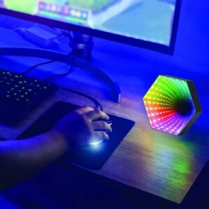 La luz de espejo 3D multicolor reactiva al sonido recargable Monster proporciona la decoración adecuada para su espacio en constante evolución. Tendrás más de 300 opciones únicas de iluminación de color giratoria, regulable y ajustable para que tu área sea lo más llamativa posible. Utilice el control remoto para modificar o seleccionar los modos apropiados para sus luces desde una distancia de hasta 30 pies. Se puede colocar en su escritorio con el soporte de mesa plegable o en la pared con la placa trasera magnética incluida. Cuando está apagado, tiene un impresionante acabado de espejo, pero cuando está encendido obtendrás el colorido y sorprendente efecto 3D Infinity. Active el modo Música y sus luces reaccionarán a los sonidos de cualquier canción o audio para obtener una pantalla colorida. Enciéndalo fácilmente desde cualquier fuente USB con el cable de carga incluido. Ya sea que esté conectado a una computadora de escritorio, portátil o cualquier otro dispositivo compatible, después de recargarla tendrás hasta 2 ½ horas de luz continua. Haga que cualquier habitación destaque con la luz de espejo 3D multicolor reactiva al sonido recargable.