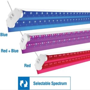 Eleve su cultivo interior con la luz de cultivo LED de espectro seleccionable de 2 pies de gran valor. El espectro seleccionable permite al usuario optimizar el ciclo de crecimiento de sus plantas seleccionando la longitud de onda del espectro de luz como solo rojo, solo azul o rojo + azul con los controles de potencia resistentes al agua y de colores coordinados. Ya sea que esté iniciando plántulas, cultivando hierbas o simplemente manteniendo plantas llevadas al interior durante el invierno, esta luz de cultivo LED de espectro seleccionable permite al productor elegir la porción del espectro más apropiada para la etapa de crecimiento. Seleccione el interruptor de encendido Azul para elegir el espectro Azul durante el estado vegetativo de la planta o el interruptor de encendido Rojo para elegir el espectro Rojo para la fase de floración para aumentar la intensidad y promover mayores rendimientos. Este 20W 2 pies. La luz de cultivo de espectro seleccionable produce hasta 30. 6 μmol/s de PPF e incluye un receptáculo sin conexión a tierra para conectar hasta 10 unidades en total. Esta lámpara de cultivo LED de gran valor tiene clasificación de humedad y produce un calor mínimo, lo que le permite cultivar plantas, flores, hierbas o vegetales pequeños en varios lugares interiores. Dale a tus plantas de interior la luz que necesitan para crecer sanas y fuertes durante todo el año.