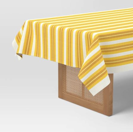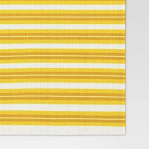 Realza tu experiencia gastronómica con este mantel a rayas de Threshold™. Su diseño rectangular, con un elegante estampado de rayas en un vibrante tono amarillo, facilita su combinación con diversos estilos de decoración y paletas de colores, creando un ambiente versátil. Confeccionado en algodón flameado, protege las superficies de derrames, manchas y arañazos, y es lavable a máquina para una limpieza rápida cuando sea necesario.