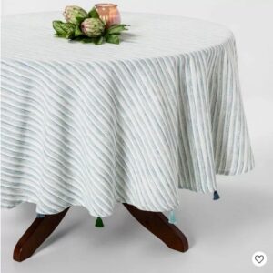 Actualice instantáneamente la decoración de su mesa de comedor con estos manteles de rayas azules de Opalhouse ™. Este mantel de algodón estampado con rayas azules y completado con borlas decorativas aporta un toque informal a cualquier mesa. El accesorio de mesa duradero protege su mesa de esos arañazos y derrames, y tan práctica como bonita, es una lavadora para una limpieza conveniente.