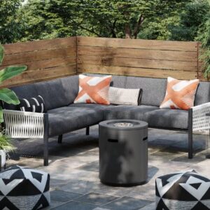 Aproveche su espacio al aire libre después de que se ponga el sol o en días fríos con la columna de fuego de metal redonda de Threshold™. La sencilla silueta de pilar de esta columna de fuego de gas propano combina fácilmente con su decoración exterior, y el metal negro le da un aspecto elegante. La columna no solo emite un brillo estéticamente agradable, sino que también dispersa el calor en un radio de siete pies para que usted y sus invitados se sientan cómodos en los días fríos y así extender su temporada de entretenimiento al aire libre.