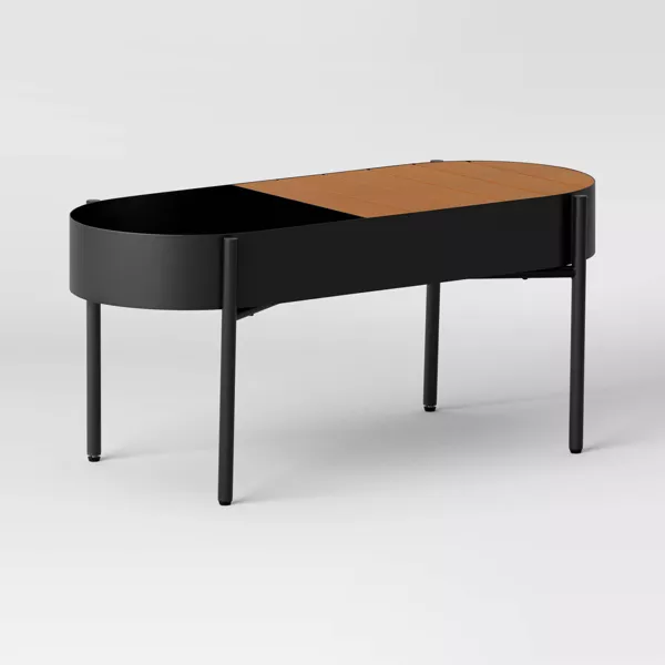 Añade una pieza de decoración única que te permita exhibir tus plantas favoritas en tu patio con este macetero metálico de Room Essentials™. Hecho de metal, este macetero se divide en dos secciones: una para tus plantas y otra con un diseño de listones de imitación madera. Además, cuenta con riego automático para un cuidado cómodo de las plantas. Colócalo en tu porche o patio para un toque realmente llamativo.