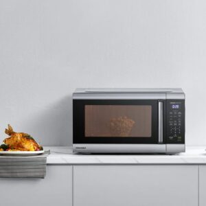 Este horno microondas Toshiba de acero inoxidable tiene una capacidad de 2,2 2,2 Cu. Microondas de tamaño familiar que le brinda una experiencia de cocina fácil y agradable. La tecnología inversora de Toshiba ayuda a ahorrar energía y puede cocinar los alimentos de manera más uniforme y deliciosa. El sensor inteligente incorporado que ajusta el nivel de potencia y el tiempo automáticamente elimina las conjeturas al cocinar. Y el aspecto atemporal con rayas de acero inoxidable encajará con cualquier estilo de cocina y la cavidad súper espaciosa de 2,2 pies cúbicos ofrece más posibilidades para una cena familiar. Los 10 niveles de potencia ajustables permiten resultados óptimos de cocción y recalentamiento de una variedad de alimentos. Otras opciones convenientes, como Express Cook 1-6 min, +30 segundos, menús preestablecidos, no solo aumentan la flexibilidad, sino que también hacen que la operación diaria sea más fácil y rápida. Este microondas puede descongelar tus ingredientes uniformemente por tiempo y peso. El reloj digital y el temporizador se iluminan en una pantalla LED de fácil lectura. También viene con modo ECO de ahorro de energía que ayuda a ahorrar energía. Y puedes desactivar el sonido para tener un ambiente tranquilo.