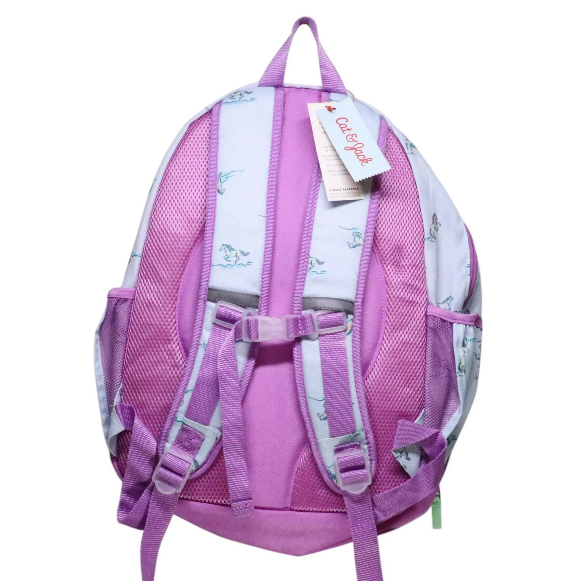 Ayude a su hijo a mostrar su amor por los animales con la mochila clásica de 17 pulgadas de Cat & Jack. Esta mochila no estructurada está cubierta con estampado de caballo para un aspecto caprichoso, y está diseñada con un bolsillo para computadora portátil, bolsillos laterales y un bolsillo frontal con cremallera para ayudarlos a llevar y organizar todos sus elementos esenciales de la escuela. Incluyendo un llavero pop-it en forma de herradura, esta mochila es lavable a máquina para una fácil limpieza. Además, es muy fácil de llevar con la correa del esternón y las correas de la mochila. ¿Cat & Jack? : Diseñado para todos los niños para que puedas confiar en que está hecho para ti.