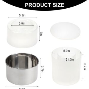 Dimensiones del artículo: El molde para cubeta de hielo con tapa tiene un diámetro de aproximadamente 5.9 pulgadas y una altura de 5.7 pulgadas. La bandeja de goteo de acero inoxidable tiene un diámetro de aproximadamente 6.3 pulgadas y la altura es de 3.7 pulgadas. La base tiene un diámetro de aproximadamente 5.3 pulgadas y una altura de 5.3 pulgadas.