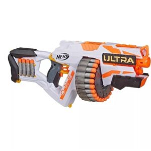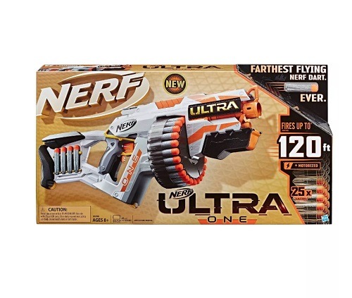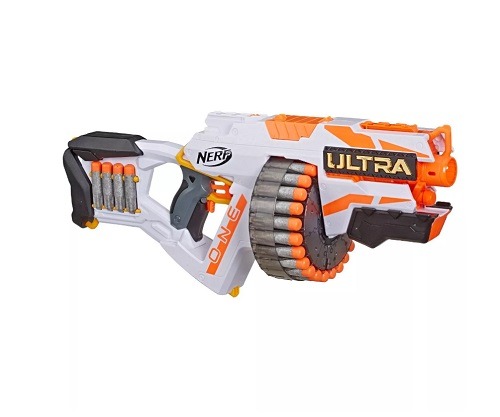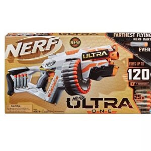- NERF ULTRA ONE BLASTER CON TAMBOR DE ALTA CAPACIDAD: El blaster motorizado Nerf Ultra One incluye un tambor de dardos de alta capacidad que contiene hasta 25 dardos Nerf Ultra. Funciona solo con los dardos Nerf Ultra.