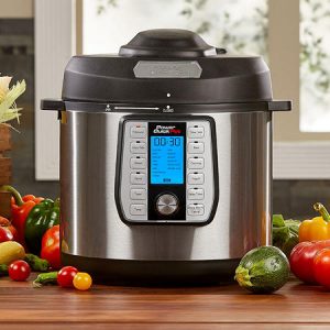 La Power Quick Pot es una multicocina de un toque que funciona como olla a presión, olla de cocción lenta, sous vide, olla arrocera y más. Cuenta con 37 funciones de cocción y calibra el tiempo, la presión y la temperatura para cocinar cualquier alimento a la perfección.