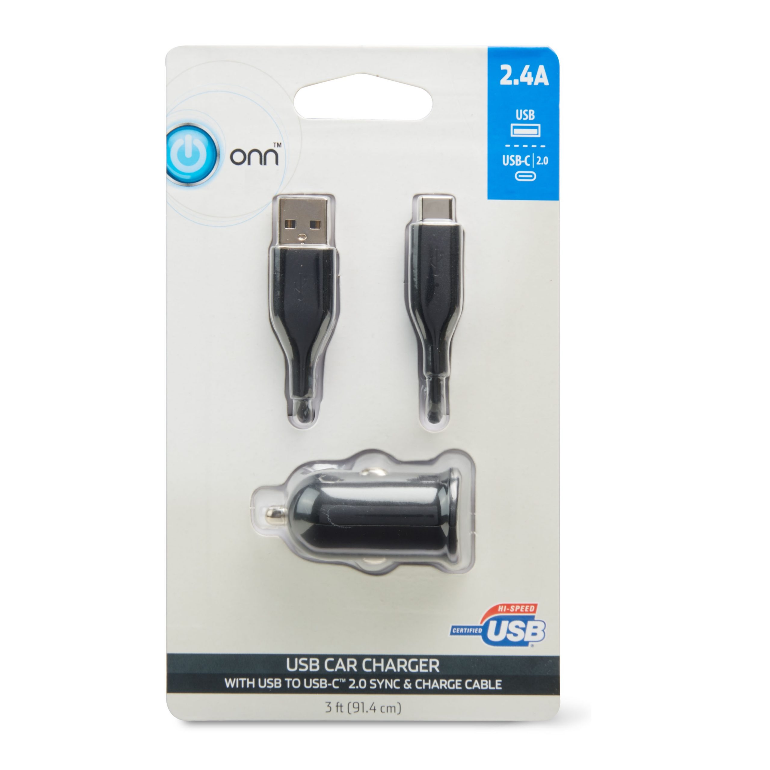 Onn Cable USB-C Con Cargador Para Auto