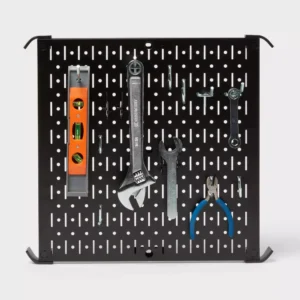 Mejore su organización con este tablero de clavijas de metal cuadrado de 16 pulgadas de Brightroom™. Fabricado en acero al carbono, este tablero de metal para montaje en pared está diseñado con orificios circulares espaciados de manera uniforme y ranuras verticales estrechas que permiten la colocación versátil de clavijas y ganchos para colgar utensilios de cocina, suministros de oficina, equipos de jardinería y otras herramientas.