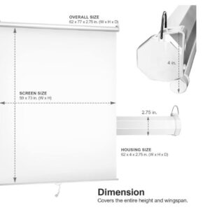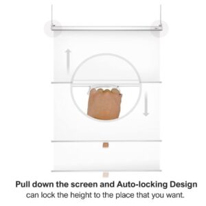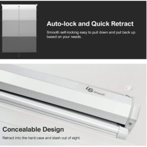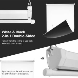 - Funcionamiento suave: pantalla blanca montada en la pared o el techo, tira del mango hacia abajo a cualquier posición y deja que el rodillo de precisión bloquee automáticamente la pantalla en su lugar.