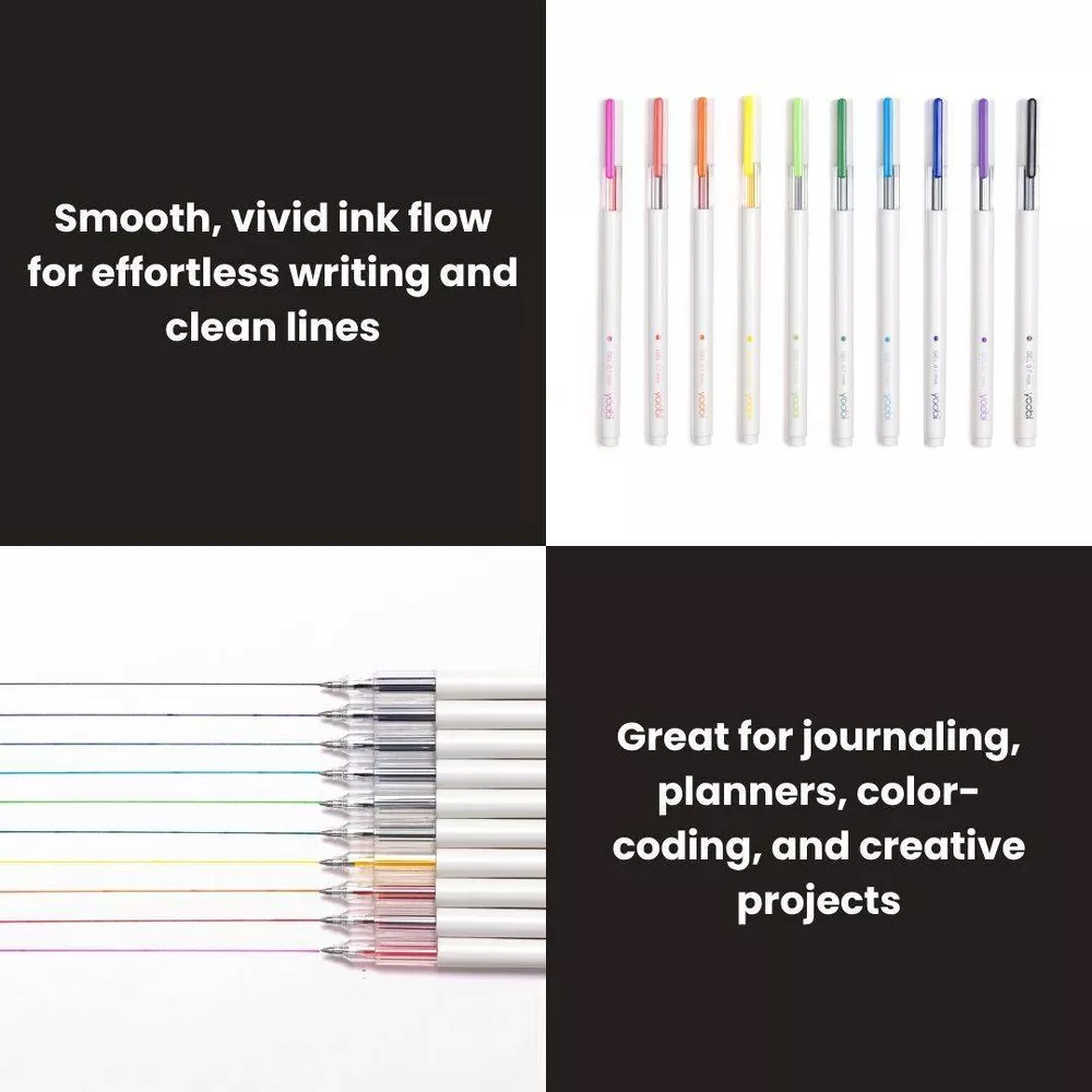 Paquete de 10 bolígrafos de gel multicolor con puntas de precisión de 0.7 mm