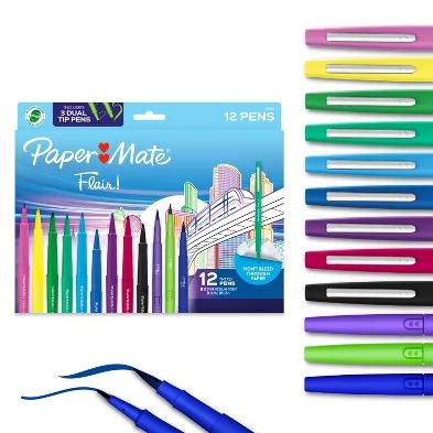 Paquete de 12 boligrafos Paper Mate Flair y Paper Mate Flair Dual – Marca Paper Mate