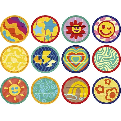 Las pegatinas de colores se ajustan a cada tapa para un toque personal, con espacio para escribir nombres o mensajes.