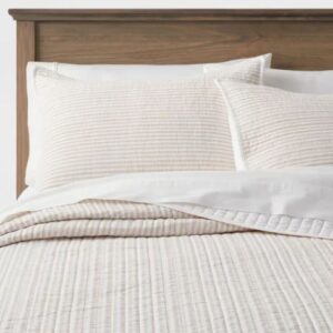 Complementa tu ropa de cama con el estilo atemporal de la funda de edredón reversible de algodón a rayas de Threshold™. Esta funda de almohada rectangular está adornada con amplias rayas horizontales en un lado y al revés formando líneas verticales estrechas ampliamente ubicadas en una combinación de colores coordinados para una segunda apariencia refinada. La funda reversible está hecha de 100% algodón para un uso cómodo durante todo el año y se puede lavar a máquina para un fácil cuidado. Además, tiene un cierre tipo sobre interior de seis pulgadas que mantiene la almohada bien guardada y al mismo tiempo es fácil de poner y quitar.