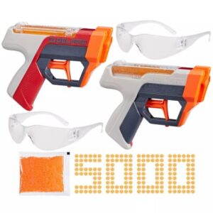¡Lanza la batalla con los lanzadores Nerf Pro Gelfire que ofrecen explosiones de alto rendimiento y cuentan con rondas hidratadas que explotan al impactar! Las balas Nerf Pro Gelfire vienen deshidratadas en la caja, agrega agua para hidratarlas. Las balas hidratadas disparan desde el desintegrador a gran velocidad y explotan cuando alcanzan un objetivo. ¡No es necesario recoger rondas! El paquete Nerf Pro Gelfire Dual Wield incluye 2 lanzadores que cuentan con disparo instantáneo, ¡sin necesidad de cebado! Simplemente aprieta el gatillo para disparar balas. Puedes sostener y disparar un desintegrador en cada mano para obtener ventaja en la batalla con dos puños en juegos competitivos al aire libre. ¡Dispara tan rápido como puedas apretar el gatillo! No se necesitan pilas.