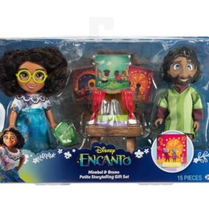 La 60ª función de Walt Disney Animation Studios, Encanto, cuenta la historia de una familia extraordinaria, los Madrigals, que viven escondidos en las montañas de Colombia, en una casa mágica, en un pueblo vibrante, en un lugar maravilloso y encantado llamado Encanto. La magia del Encanto ha bendecido a cada niño de la familia con un regalo único, desde la súper fuerza hasta el poder de curar a cada niño excepto uno, Mirabel. Pero cuando descubre que la magia que rodea al Encanto está en peligro, Mirabel decide que ella, la única Madrigal ordinaria, podría ser la última esperanza de su familia excepcional. Juega tu momento de historia favorito de Disney’s Encanto con el juego de regalo Mirabel & Bruno Petite Storytelling Únete a Mirabel en su aventura para salvar la magia de su familia y descubrir su misterioso Tio Bruno escondido dentro de las paredes de la casa! Con este increíble conjunto, puedes recrear sus divertidas escenas de películas y reproducir tus momentos favoritos de historia. Pon el escenario con los amigos de Bruno y añade diferentes fondos de televisión, como en la película. Mirabel y Bruno están vestidos con sus modas exclusivas. Mirabel viene completo con sus anteojos, sandalias de alpargata y la pieza de rompecabezas de visión de la película. Con el juego de regalo Mirabel y Bruno Petite Storytelling Gift Set, tendrás horas de diversión jugando escenas emocionantes de Disney Encanto