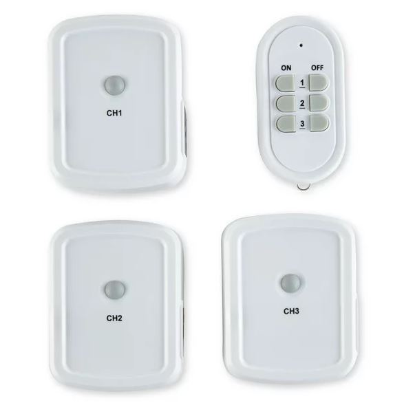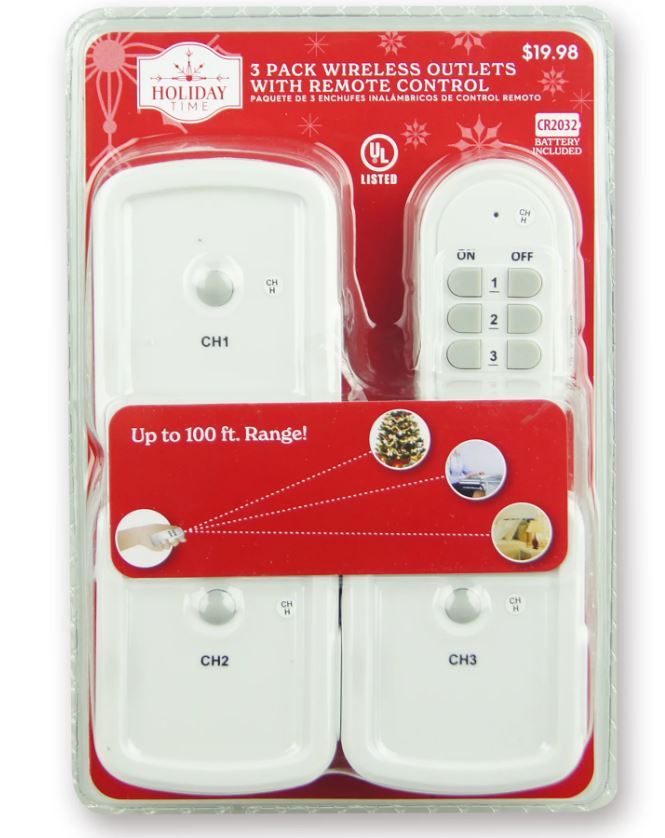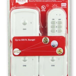 Este paquete de tres salidas inalámbricas funciona hasta 100 pies de cada receptor para máxima comodidad y control. Los con control remoto son fáciles de instalar en segundos y no requieren herramientas ni cableado adicionales. Simplemente conecte su electrodoméstico al receptor y el receptor al tomacorriente de pared para comenzar a controlar instantáneamente sus pantallas navideñas electrónicas. Solo para uso en interiores, también puede utilizar estos enchufes inalámbricos para cualquier aparato eléctrico de su hogar. Haz que la decoración navideña sea fácil.