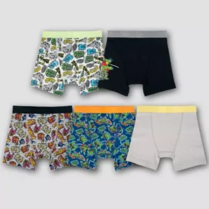 Para un día lleno de acción, a tu hijo le encantará elegir un par de este paquete de 5 bóxers de las Tortugas Ninja. Con un corte clásico, estos bóxers estampados están confeccionados en 100 % algodón para mayor comodidad. Además, su cintura elástica completa le permite un ajuste seguro. Este paquete incluye cinco bóxers, cada uno con un colorido estampado inspirado en las Tortugas Ninja que sin duda encantará a tu pequeño fan de las Tortugas Ninja.