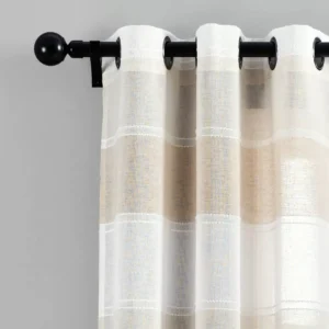 Las rayas gruesas de color en las cortinas transparentes teñidas con hilo dan el aspecto de una confección de patchwork. Nuestro juego de cortinas transparentes con ojales y rayas texturizadas para ventanas lucirá increíble en tu hogar. La tela transparente dejará entrar mucha luz natural para iluminar tu dormitorio, sala de estar u oficina en casa. Este juego de cortinas transparentes con ojales y rayas texturizadas para ventanas será una declaración sutil en tu hogar. Los tonos neutros les dan un aspecto elegante que combinará fácilmente con la decoración que ya tienes en tu hogar. Nuestro juego de cortinas transparentes con ojales y rayas texturizadas para ventanas está disponible en múltiples opciones de color. Cada panel mide 38 pulgadas de ancho y 84 pulgadas de largo. Este estilo de cortina se vende por pares, por lo que recibirás dos paneles por pedido. La instalación es sencilla gracias a los ojales de metal de 1,6 pulgadas de diámetro. Solo tienes que deslizar la barra de la cortina por los ojales para colgarla. Para la limpieza, recomendamos lavarla a mano y colgarla para que se seque. Sigue todas las instrucciones de la etiqueta del producto.