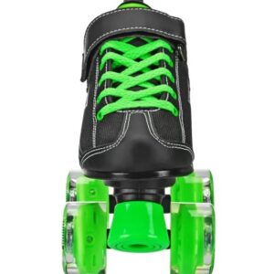 Ilumina la pista con los patines cuádruples Roller Derby Sparkles y Blazer, diseñados para hacer de cada sesión de patinaje una experiencia divertida y emocionante. Estos llamativos patines no solo son elegantes sino que también cuentan con ruedas LED vibrantes que se iluminan con cada movimiento, lo que garantiza que destaques en la pista. Cada patín cuenta con dos ruedas que se iluminan cuando la rueda rueda, utilizando la energía generada por el movimiento. ¡No se requieren baterías! Estas ruedas de uretano no sólo son llamativas sino que también tienen el agarre y el rebote adecuados para la pista o la acera. Diseñados para brindar comodidad y rendimiento, los patines cuentan con un marco compuesto duradero y una cómoda bota acolchada, que brinda estabilidad y soporte para horas de diversión patinando. Perfectos tanto para principiantes como para patinadores experimentados, estos patines vienen en varios tamaños para adaptarse a todas las edades. ¡Enciende tus aventuras de patinaje con los patines Light Up Roller de Roller Derby! ¡Seguro que tu hijo se divertirá!