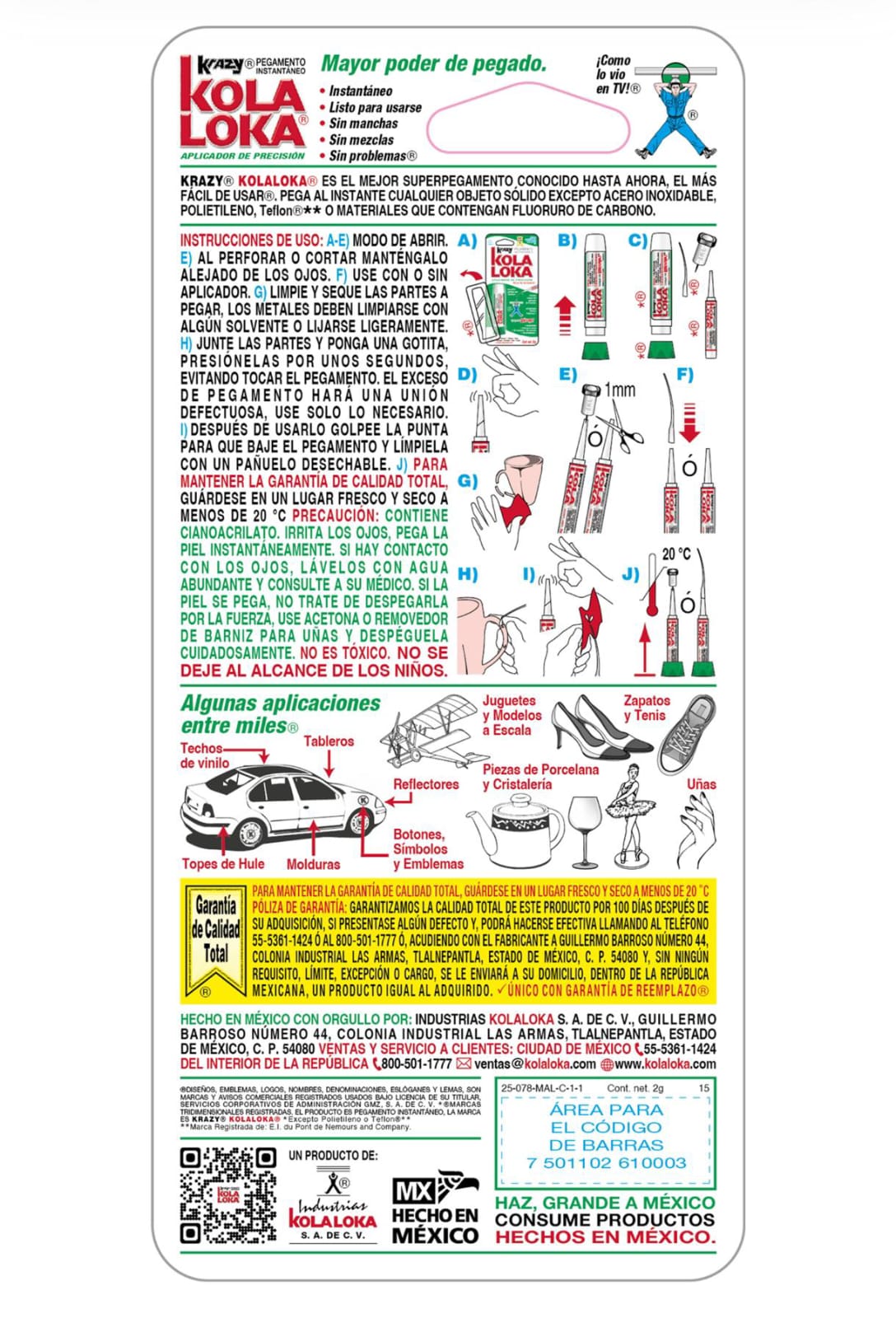 Pegamento instantáneo Krazy con aplicador de precisión 2g -KolaLoka