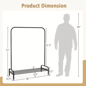 Construcción robusta: hecho de hierro recubierto de plástico de alta calidad, este perchero presenta una alta resistencia al óxido y al agua con una larga vida útil. Además, el tubo de hierro de 0,9″ puede proporcionar una capacidad de 22 libras en la barra superior y 44 libras en el estante de almacenamiento inferior.