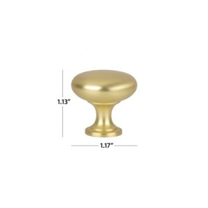 el juego de perillas agrega un toque de elegancia a su cocina o baño. Este cálido acabado de latón cepillado y su clásica forma redonda aportarán un toque sofisticado y tradicional con un toque moderno. El diseño atemporal complementa una amplia gama de estilos decorativos y el acabado de latón cepillado presenta un tono dorado cálido con una superficie mate suave. Transforme fácilmente la apariencia de su espacio o actualice un mueble simplemente actualizando el hardware de su gabinete.