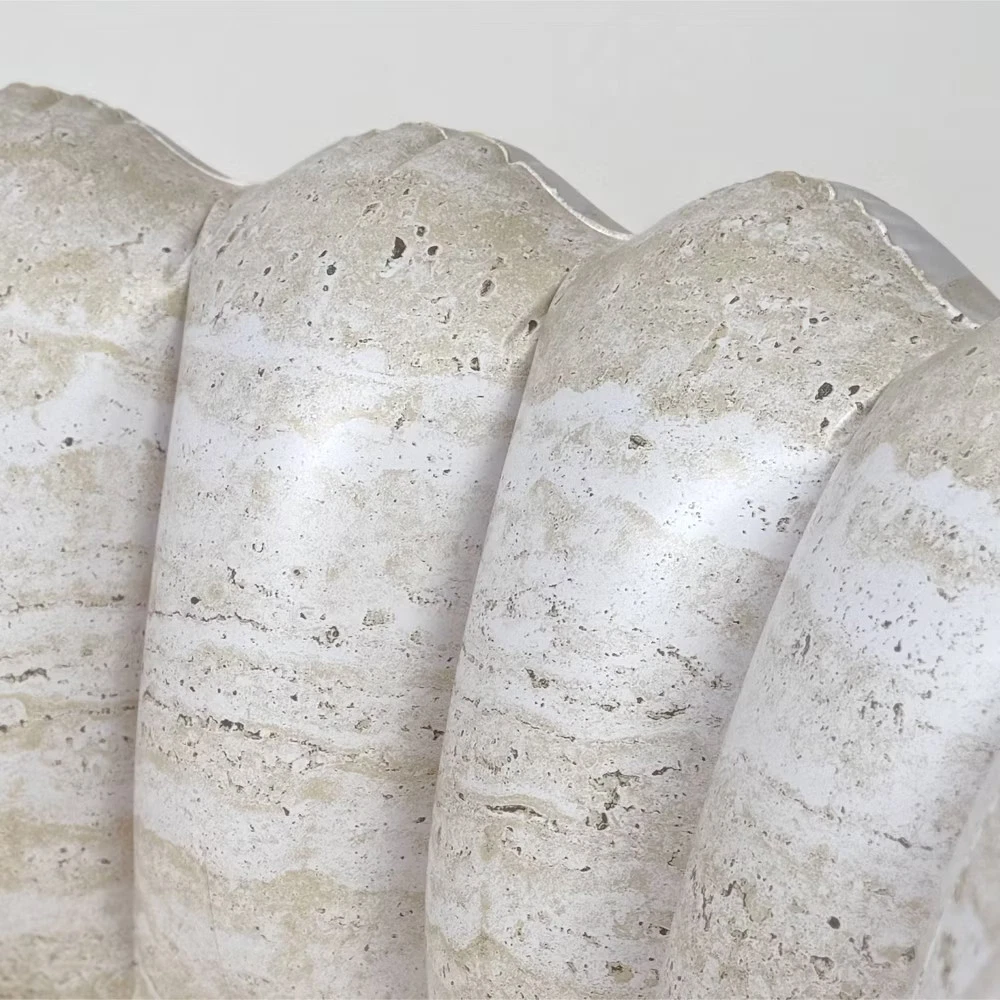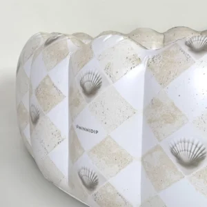 • Su forma festoneada y acolchada (patentada), que incorpora los clásicos motivos de damero en travertino y los detalles de conchas en yeso de la colección COASTAL TRAVERTINE, captura a la perfección la «joie de vivre» (alegría de vivir) de la costa francesa.