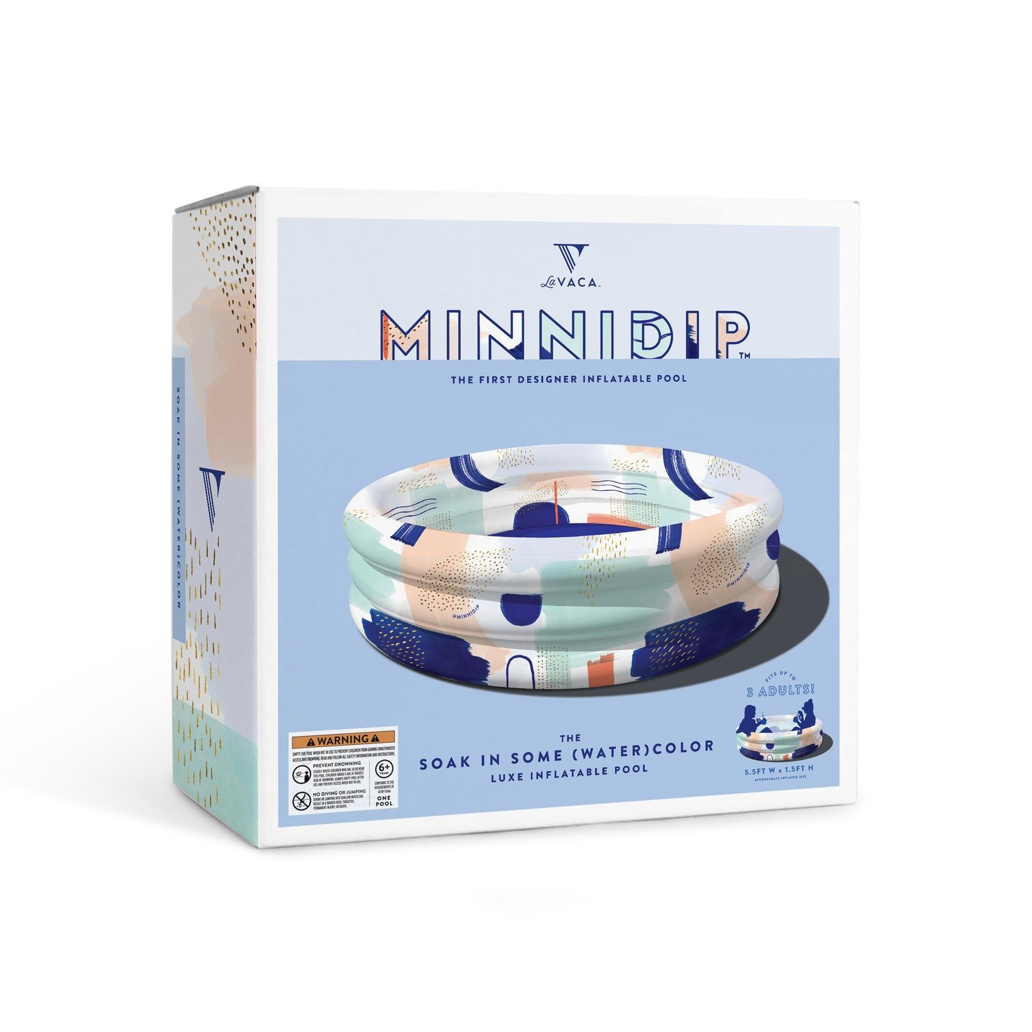 ¡Con 5.5 pies de ancho y 1.5 pies de alto, todos pueden hacer el corte para ir minnidipping! Se adapta a hasta 3 adultos y es perfecto para niños de 6 años en adelante. Eleve su diversión de verano … ¡solo agregue agua!