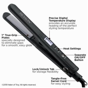¡Revlon Hair Tools se dedica a ayudar a las mujeres a lograr un cabello hermoso que les encantará! Ya sea que las mujeres deseen explosiones hermosas, olas grandes y envidiables, mechones rectos llamativos o el accesorio de moda perfecto para completar el look, Revlon tiene las herramientas de peinado que deseas. ¡Nuestra innovadora línea Pro Collection le proporcionará la última tecnología para ayudarlo a lograr los resultados deseados rápidamente! Nuestra línea Perfect Heat, con triple revestimiento cerámico, está diseñada para brindarle el calor óptimo y el revestimiento cerámico para un menor daño y un nivel de peinado perfecto. ACERCA DEL PRODUCTO: Obtenga un cabello perfectamente liso en todo momento con Revlon Perfect Straight 3X Ceramic 1? Plancha alisadora digital. Tres capas de revestimiento cerámico en esta plancha ayudan a reducir el daño del cabello por peinarlo con una distribución uniforme del calor. Las temperaturas de hasta 430 ° F brindan un peinado más rápido para obtener resultados asombrosamente elegantes, mientras que las placas True Grip eliminan los espacios para un deslizamiento suave y fácil. La pantalla de temperatura digital precisa ofrece una lectura precisa para un calor de peinado óptimo y calor alto, calor constante. Los sensores monitorean constantemente la temperatura para una rápida restauración del calor a la temperatura perfecta para el peinado.