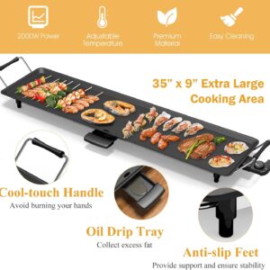 Gran superficie de cocción para fiestas: diseñada con una amplia superficie de cocción de 35 x 9 pulgadas, nuestra sartén eléctrica antiadherente te permite cocinar mucha comida a la vez. Con esta plancha para barbacoa para parrilla al aire última intervensión, puedes disfrutar fácilmente de un delicioso sabor, como panqueques, huevos, carne de res, pollo, pescado, verduras, etc.