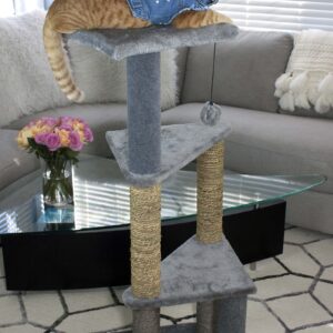 - Cat Craft mirador de 3 pisos con juguete colgante de pompones de piel sintética colgante