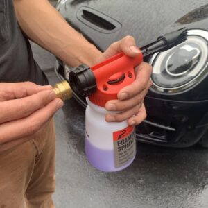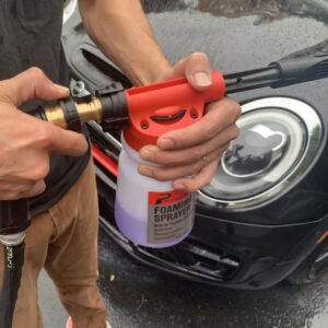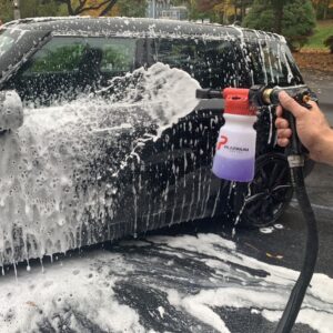 Todos los entusiastas del cuidado de automóviles saben que usar un rociador de espuma para lavado de autos es la opción ideal para eliminar la suciedad y la mugre de las superficies pintadas o cromadas. El rociador de espuma de la serie Platinum actúa como un cañón de espuma de alta calidad que cubre su vehículo con una espesa espuma en cuestión de segundos. No hay necesidad de equipo adicional o lavadoras a presión costosas. Simplemente conecte, rocíe y sature su vehículo con espuma de jabón. El agua entrante de la manguera se mezcla con aire y solución de lavado de autos para crear una espuma de lavado de autos perfecta. El rociador de espuma de la serie Platinum SE CONECTA fácilmente A CUALQUIER MANGUERA DE JARDÍN y la boquilla de liberación rápida permite cambiar rápidamente entre espuma y enjuague. Tenga en cuenta que el lavado inadecuado del automóvil puede generar suciedad y mugre que se muelen en la superficie pintada y producen rayones. Con el rociador de espuma de la serie Platinum, puede obtener manchas sin manchas,