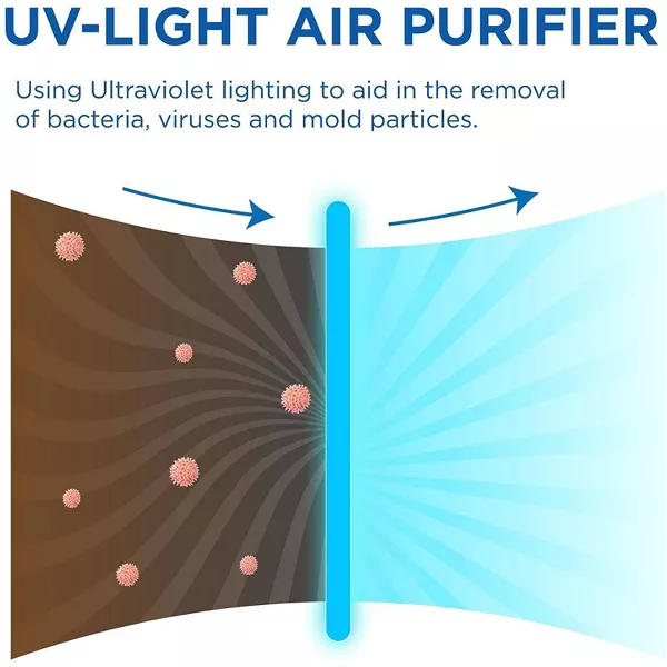 LUZ UV: Una capa adicional de protección que atrapa y elimina completamente las partículas del aire. Incluye un panel táctil con temporizador de 2 a 12 horas, 4 velocidades de ventilador, modo de suspensión, indicador de reemplazo de filtro y bloqueo para niños, ideal tanto para niños como para mascotas.