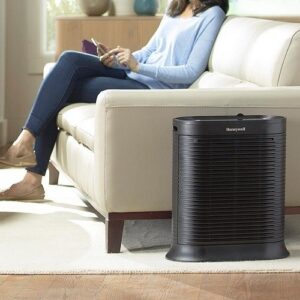 Cómo funciona el purificador de aire: un ventilador aspira continuamente los contaminantes del aire. El aire sucio pasa a través del prefiltro de carbón activado que atrapa partículas grandes y absorbe COV, gases y olores. Luego, el aire pasa a través del filtro HEPA que captura las partículas realmente pequeñas, como polvo, polen, caspa de mascotas, humo, esporas de moho y más. El filtrado A continuación, se hace circular aire más limpio y con un olor más fresco a la habitación. Los purificadores de aire de Honeywell son la marca número 1 recomendada por los alergólogos.