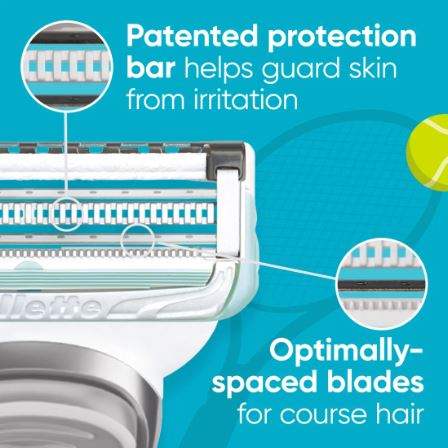 - No hagas arreglos para morder los bultos y los ingredientes. Estas maquinillas tienen una barra de defensa de irritación patentada para un afeitado suave con cuchillas que apenas tocan la piel