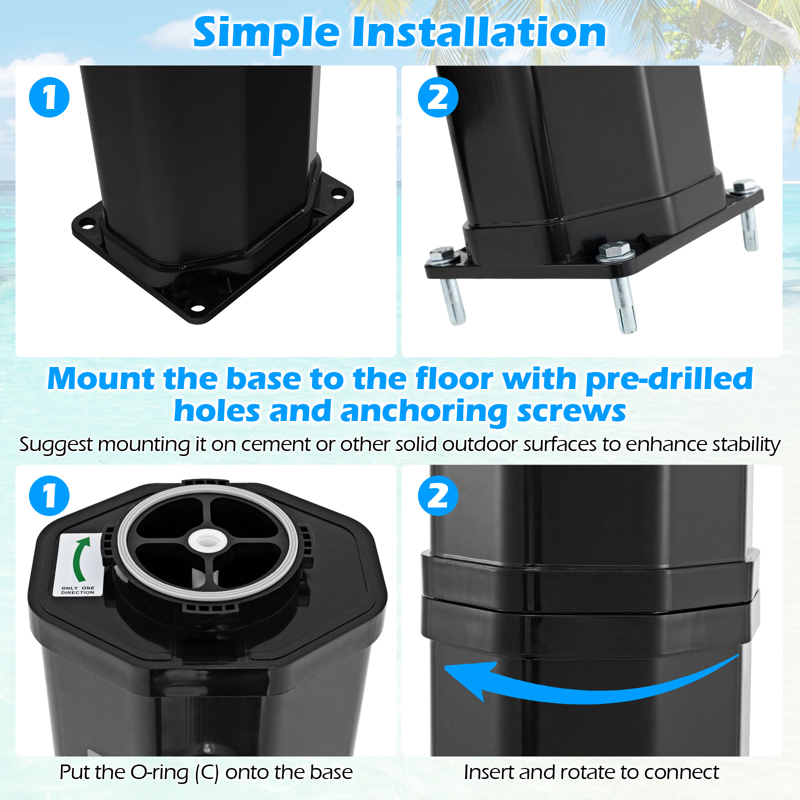 • Acabados de alta calidad: Fabricada con PVC de primera calidad y ABS cromado, esta ducha exterior solar destaca por su durabilidad y estilo. Su diseño robusto resiste diversas condiciones climáticas, garantizando una larga vida útil en exteriores.