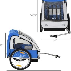 Doble asiento: con dos asientos en este remolque de bicicleta para niños, su hijo puede traer a un amigo en su divertido paseo en bicicleta por la naturaleza. El arnés de cinco puntos los mantiene seguros dentro del remolque de bicicleta para niños.
