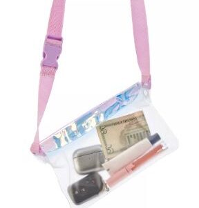 ¡Mantenga su teléfono, llaves, dinero en efectivo y otros elementos esenciales seguros y secos con el último accesorio! La correa ajustable de 1” incluida le permite usarlo como una riñonera o bandolera. La riñonera para teléfono está fabricada con un material transparente apto para dispositivos móviles que le permite seguir usando su teléfono en cualquier entorno.