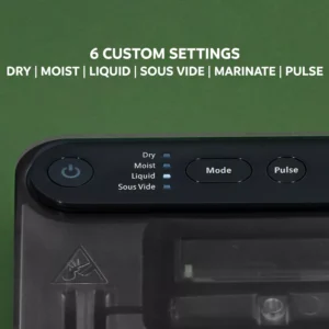6 configuraciones personalizadas que incluyen los modos Seco, Húmedo, Líquido, Sous Vide, Marinar y Pulse te permiten sellar al vacío, conservar y preparar una variedad de alimentos diferentes