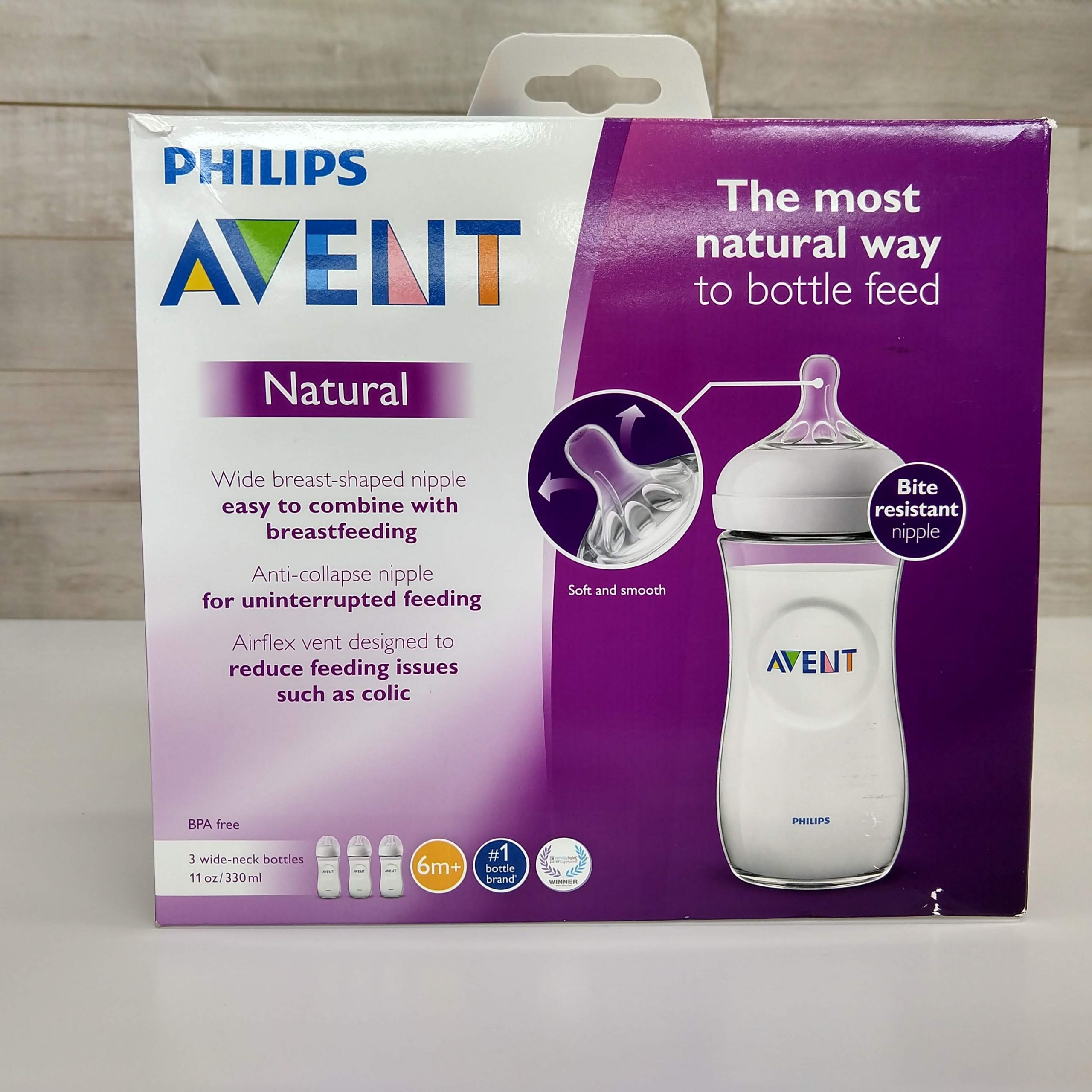 a botella de 11 onzas natural Philips Avent SCF016/37 es la forma más natural de alimentar botellas. El diseño de botella natural hace que sea fácil combinar la lactancia materna y la alimentación de botellas. El pezón ancho en forma de pecho con una punta en espiral flexible y pétalos de comodidad únicos hacen que el pezón sea más suave y más flexible para promover el cierre natural. Los pétalos también refuerzan la forma del pezón para evitar que se derrame en la boca del bebé para que su bebé pueda alimentarse de forma contenida y sin interrupción. El diseño de pezón suave imita la sensación del pecho. La forma ergonómica hace que sea cómodo para los padres para sostener y fácil para los dedos pequeños. El montaje es sencillo, con sólo unas pocas partes, y el cuello ancho de la botella hace que el relleno y la limpieza sea fácil. La botella natural está hecha de polipropileno, un material libre de BPA, y funciona con todos los pezones y tapas de la línea natural.
